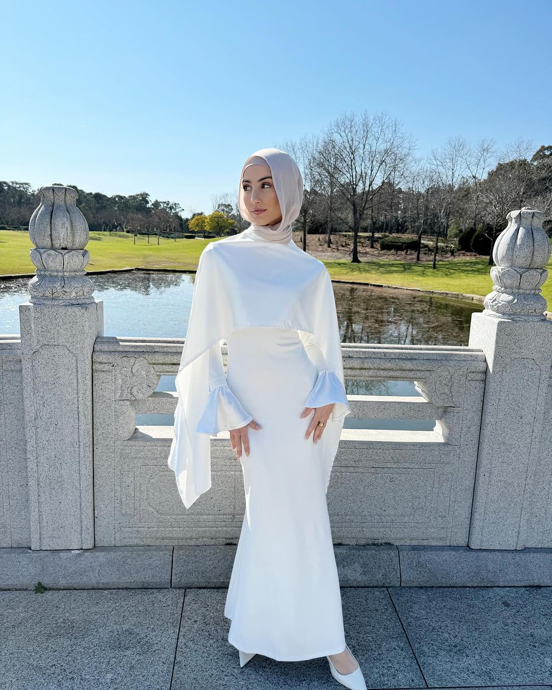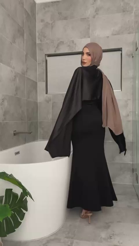 Pure cotton dress with satin cape , model is 55kg and 168 cm wearing small